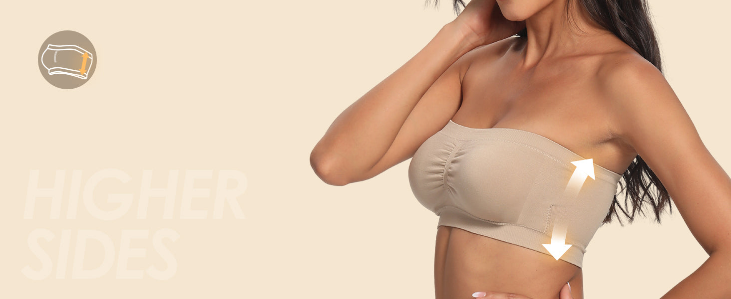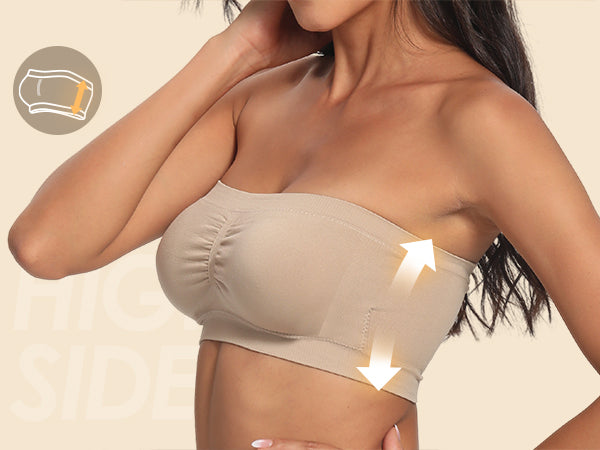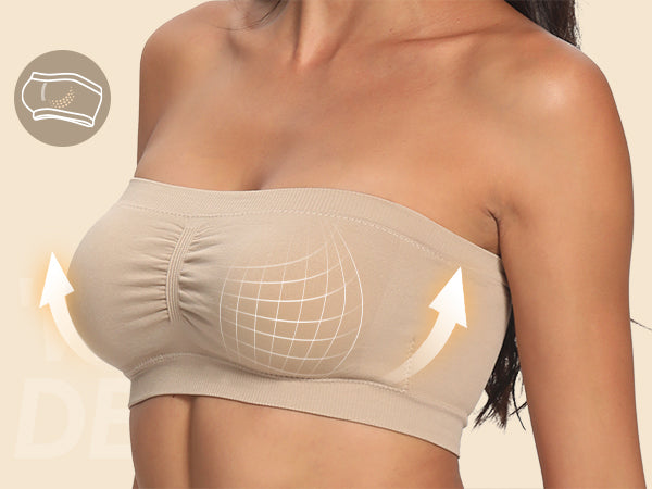 Stylish and comfortable, our bandeau bra is a wardrobe staple. Perfect for strapless tops and dresses, this padded bandeau bra provides both comfort and support. The seamless ribbed elastic band on the top and bottom ensures the bra stays in place, so you don’t have to worry about slipping or falling down. Wire, seam, and tag-free, this strapless bra will feel comfortable all day long – you can even sleep in it.