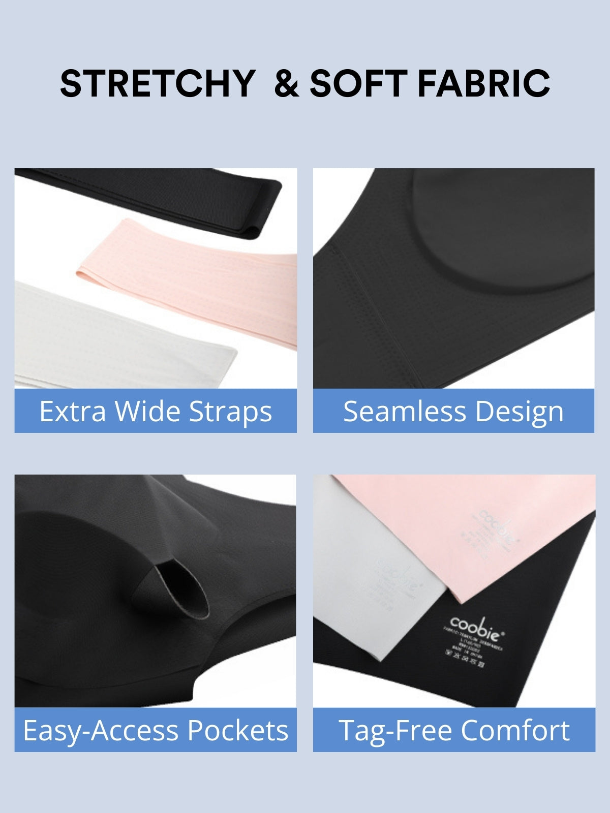 Coobie Seamless Bras are crafted from exceptionally gentle modal fabric, renowned for its remarkable softness. Beyond its luxurious feel, our choice of material underscores our commitment to sustainability and eco-friendliness.