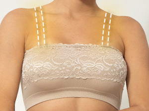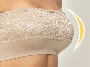 Look cute and feel comfortable in our bandeau bra. Made with our classic comfort stretch material, this strapless bra provides total comfort and support with ribbed elastic bands around the top and bottom to prevent it from slipping. It features a stylish lace front that provides a flattering natural shape. This lace bandeau bra is a stylish choice both on its own or worn under your favorite strapless top.