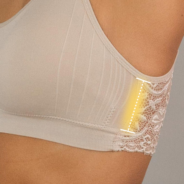 Special high-elastic sides ensure a snug fit andhelp smooth underarm bulge.
