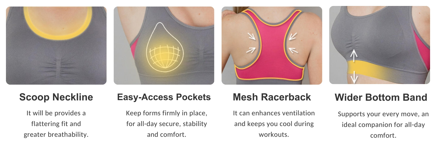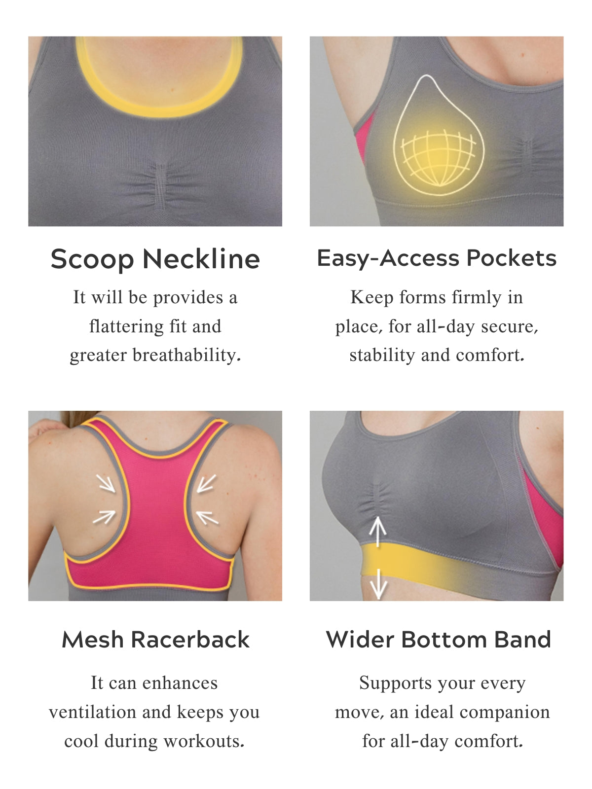 - With pad pockets that can insert post-mastectomy breast forms and prostheses perfectly