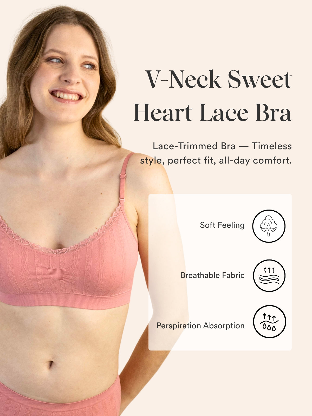 - Delicate heart lace detailing on the neckline